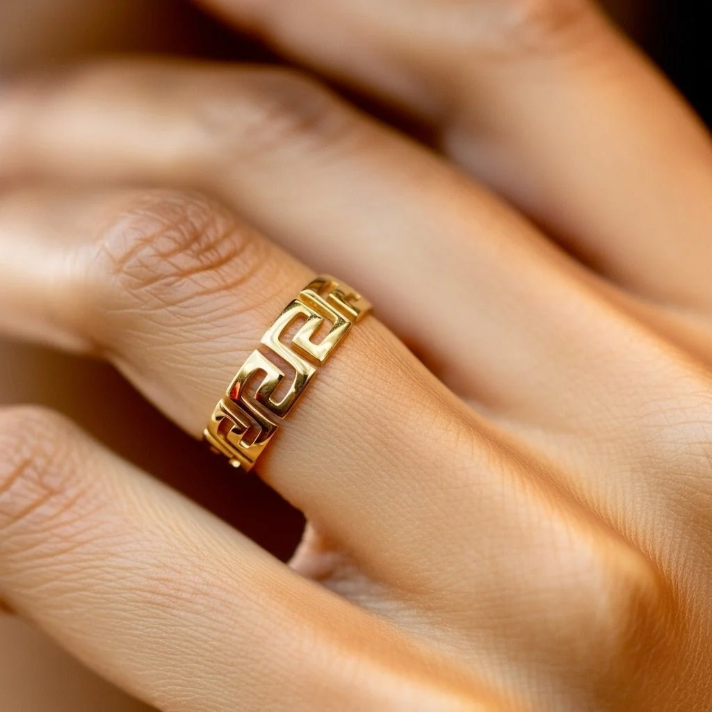 Bold Greek Key Stainless Steel Ring – Ancient Style in Gold or Silver